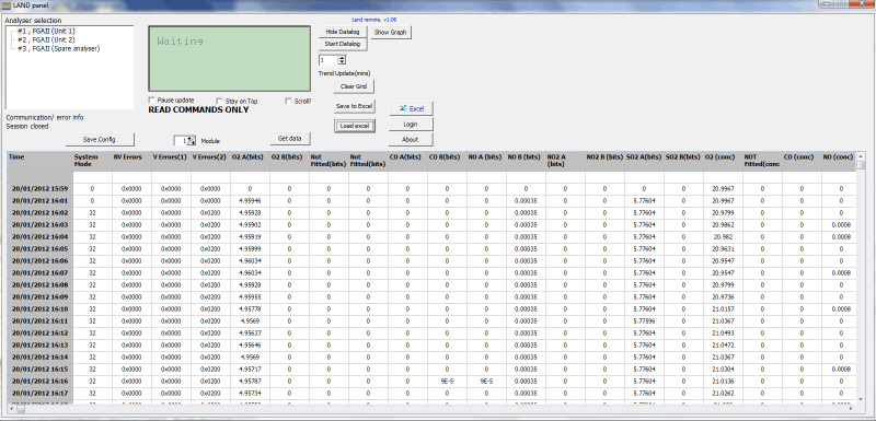 ● Land Panel: Analyser display mimic providing remote control over the Land FGAII analyser.