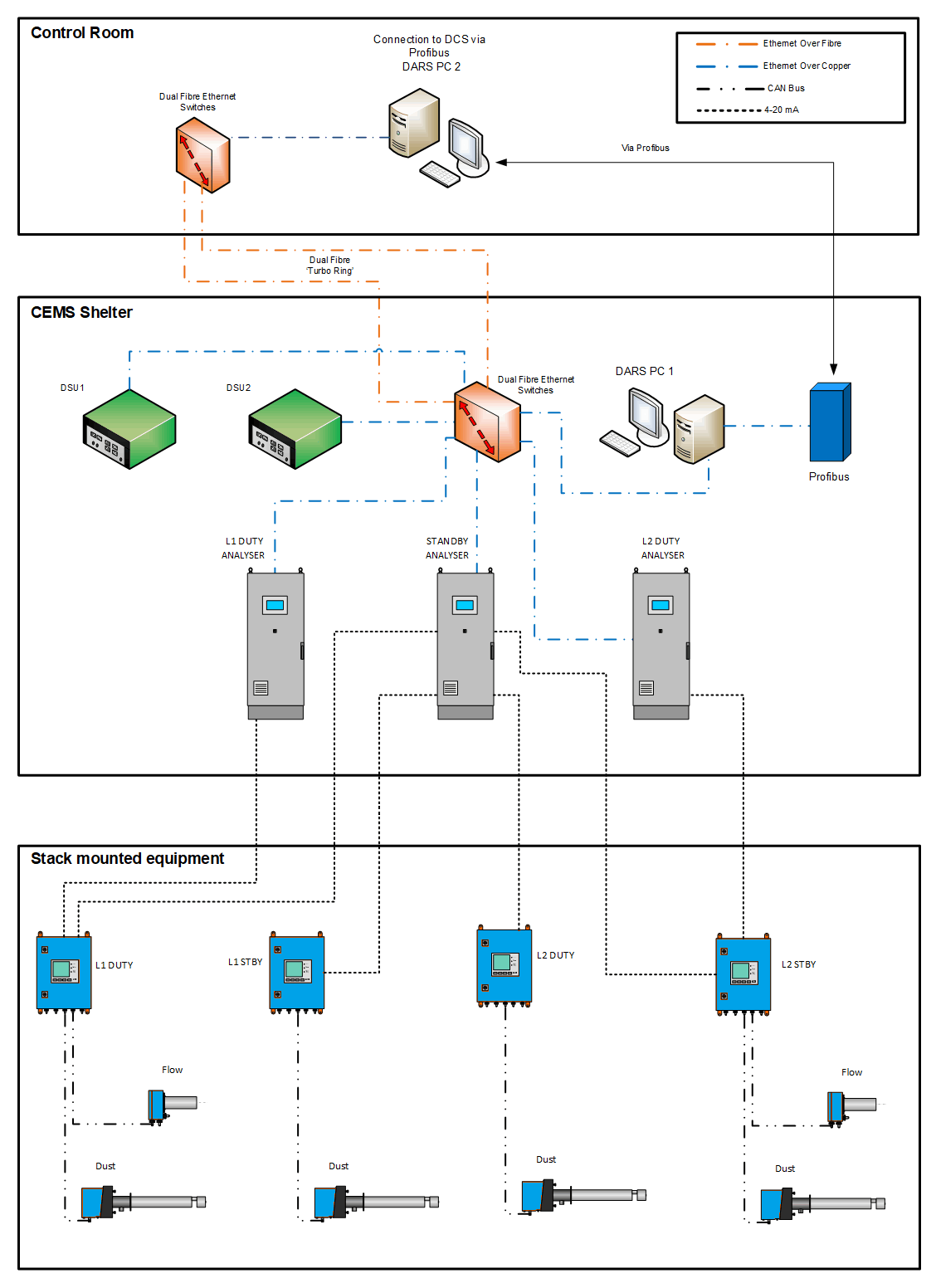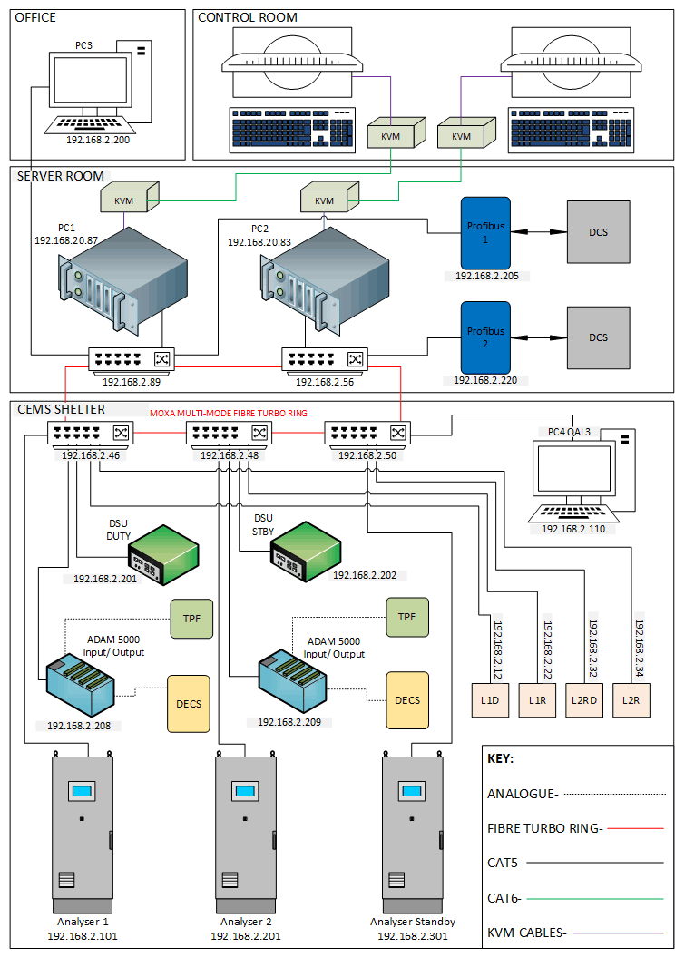 Envirosoft has the ability to interface with practically all analyser protocols to gather the data from the CEMS, and also to transmit the data back to the DCS.